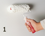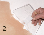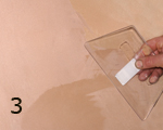 CARAVAGGIO "אפקט ספטולטו": טיח דקורטיבי לאפקט קטיפתי. 1. יש למרוח שתי שכבות של GENYUS SPECIAL לבן, שהוא צבע יסוד חשוב ביותר עבור CARAVAGGIO. יש לדלדל את החומר כהלכה. יש לאפשר לחומר להתייבש למשך 4 עד 5 שעות בין השכבות (תמונה 1). 2. יש למרוח שכבה אחת של CARAVAGGIO באמצעות שפכטל הפלסטיק המקצועי ל-CARAVAGGIO. יש להניח לחומר להתייבש בערך 6 - 8 שעות בין השכבות(תמונה 2). 3. יש למרוח את שכבת ה-CARAVAGGIO השנייה באמצעות השפכטל השקוף המיוחד (תמונה 3), ומייד לעבור על המשטח שוב באמצעות השפכטל בכיוונים שונים(תמונה 4) , כפי שמוצג בסרט הווידאו. יש לבצע את אותו תהליך על כל המשטח.