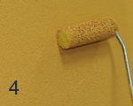 3. לאחר שהחומר התייבש לחלוטין, יש למרוח שכבה שנייה של Travertino. שכבה זו צריכה להיות מעט עבה יותר מהשכבה הראשונה ( תמונה 3). יש לעבור מייד על המשטח שוב ברולר ספוג לקבלת אפקט גלי (תמונה 4).
