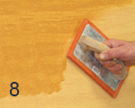 7. יש לאפשר לחומר להתייבש למשך 24 שעות, ולמרוח שכבה נוספת של Travertino, רק באזורים שצריכים להיות חלקים ובולטים, כפי שניתן לראות בסרט הווידאו. לאחר מספר דקות, יש להחליק באמצעות שפכטל פלדת אלחלד ולאפשר לחומר להתייבש (תמונה 7).